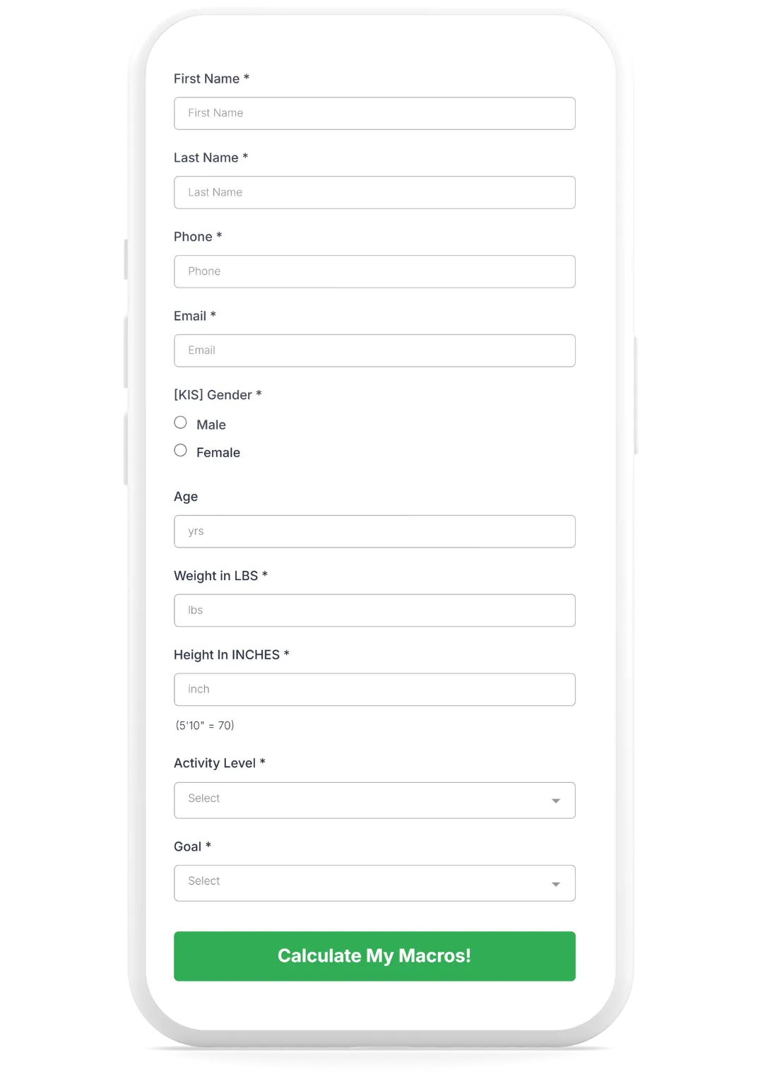 Take control of your nutrition and optimize your results with our easy-to-use macro calculator. Simply enter your details, set your goal, and start your journey to a healthier, stronger you!